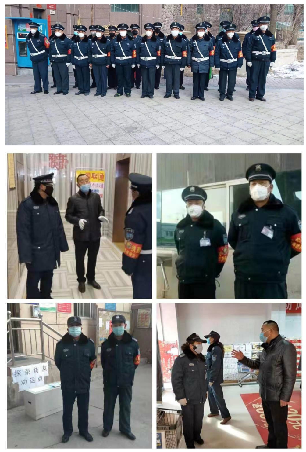 领导小组成员分赴几十个驻勤服务单位,组织队员学习《新型冠状病毒感染肺炎的预防手册》相关知识和防控办法,让每名队员都充分了解新型冠状病毒肺炎疫情发病原因、病患症状、传播途径及防治办法,引导全体队员消除工作中的恐慌心理,加强自身防护。与此同时积极配合社区、物业公司、机关、涉密单位、生产企业、学校等服务单位,为工作人员和来访人员测体温、严格登记信息、清洁消毒、劝返走亲访友人员等各项工作。在疫情防控一线,处处是公司领导、骨干带领队员坚守阵地,昼夜奋战的身影。