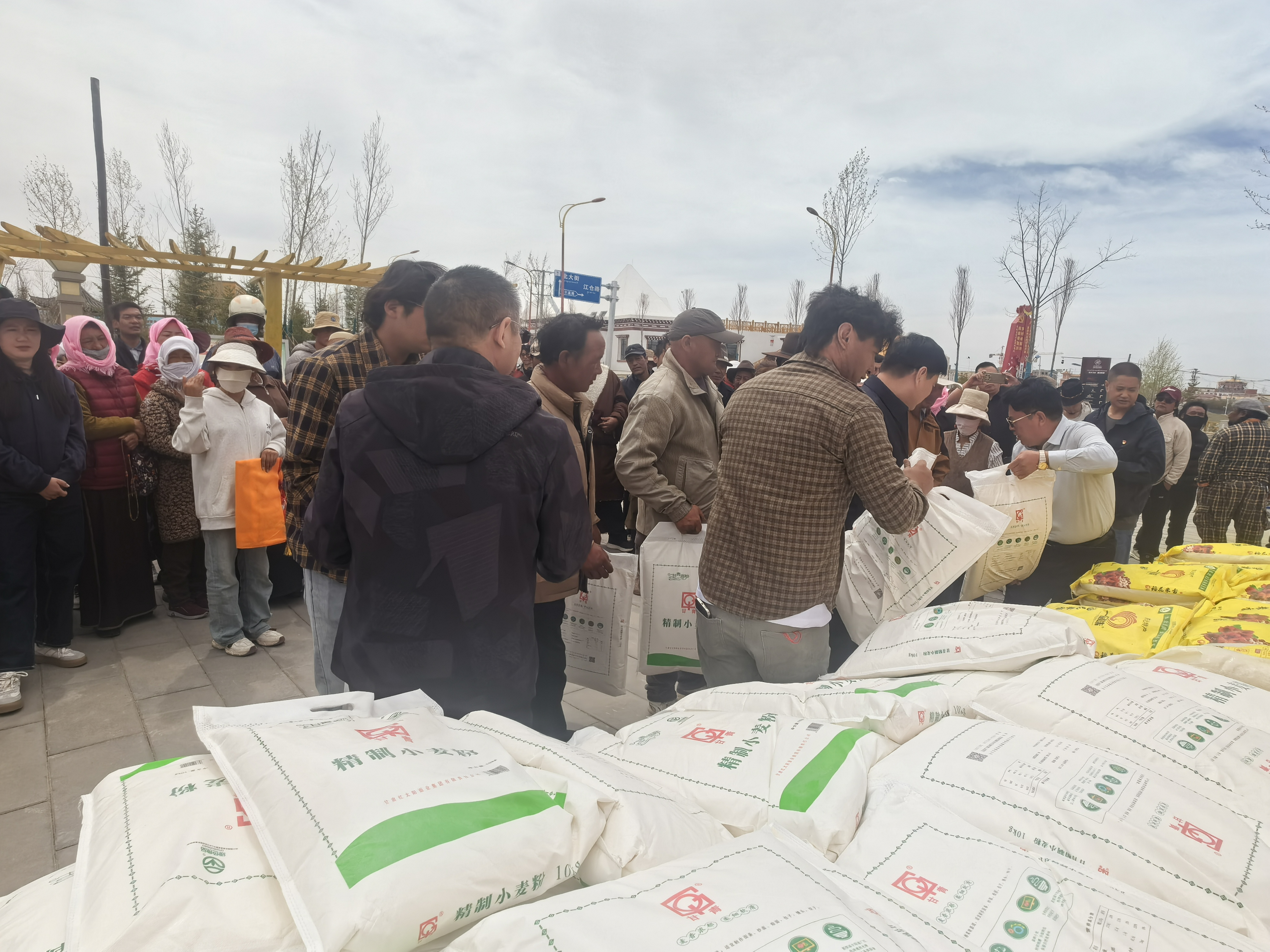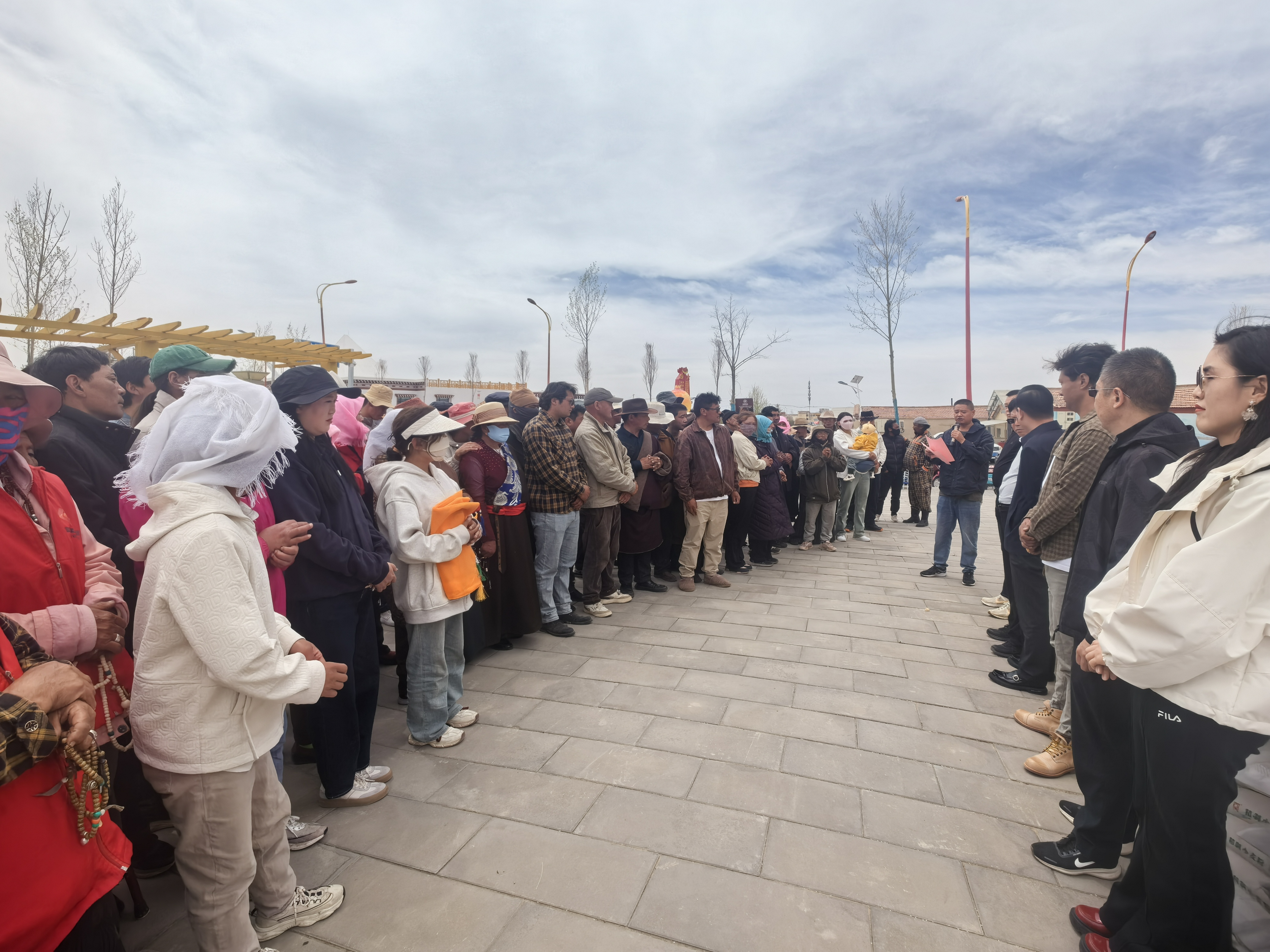 青海省河南商会会长刘强、常务副会长马刚良、秘书长肖崇飞与果洛藏贡麻村党支部书记索南才夫旦共同向果洛藏贡麻村脱贫户、监测户发放了由青海省河南商会牵头、青海省南北药业有限公司提供的150份米、面、毛巾等生活物资。为表达全村感激之情,果洛藏贡麻村党支部书记索南才夫旦代表村民向青海省河南商会和青海省南北药业有限公司赠送了锦旗。