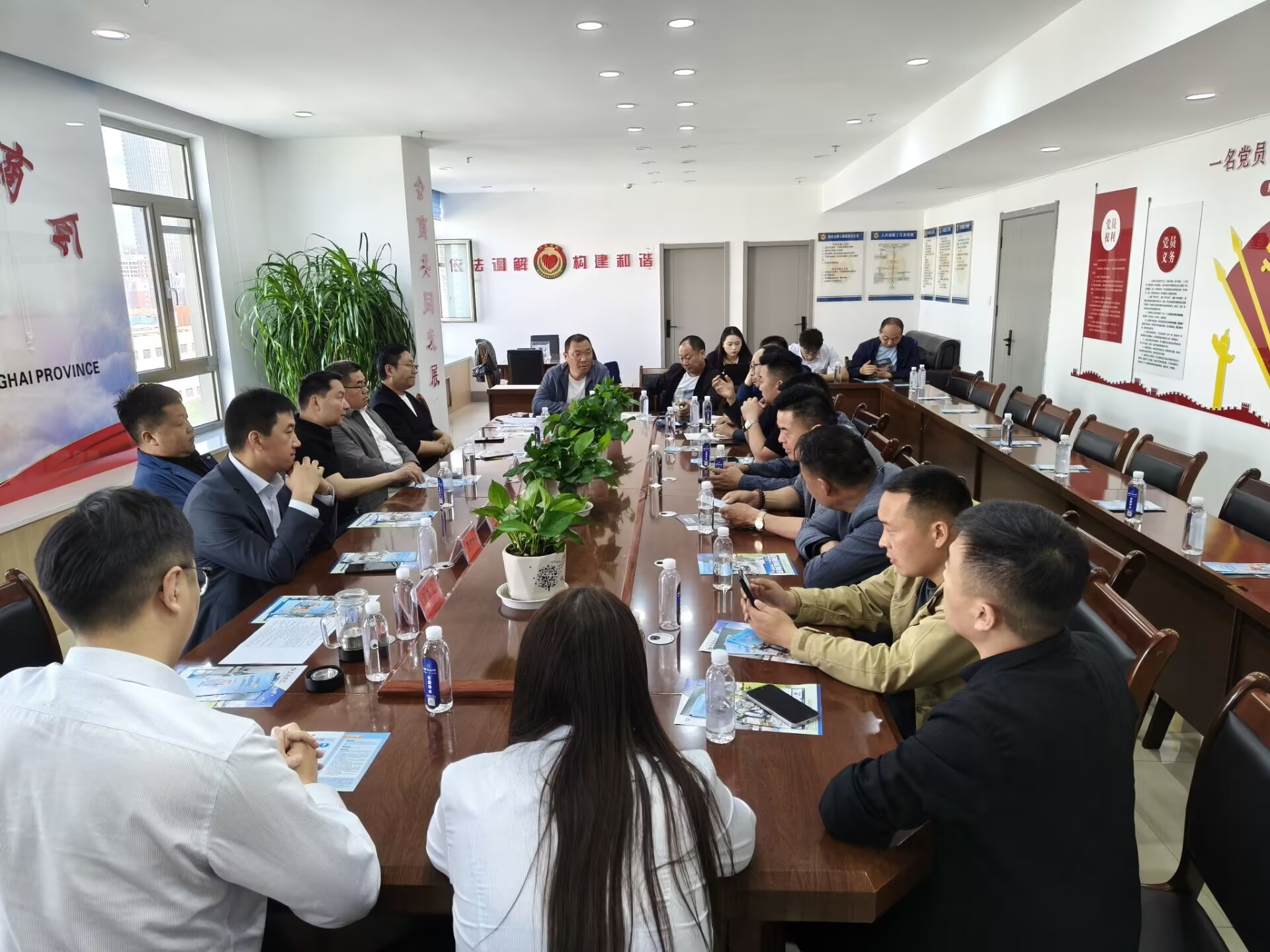 2025年6月19日下午,青海省河南商会以“加强银企对接深化金融服务”为主题,组织第一组房地产和建筑业、第八组加工和制造业,特邀交通银行西宁南山路支行,联合联动开展银企对接活动,深化合作、互利共赢,助力高质量发展。交通银行西宁南山路支行行长董明伟和5名业务经理;商会第一组负责人: 常务副会长叶中发,副会长谷超群、侯晓锋;第二组负责人:副会长黑国跃,以及本组部分会员企业代表共二十余人参加活动,商会秘书长肖崇飞主持。
