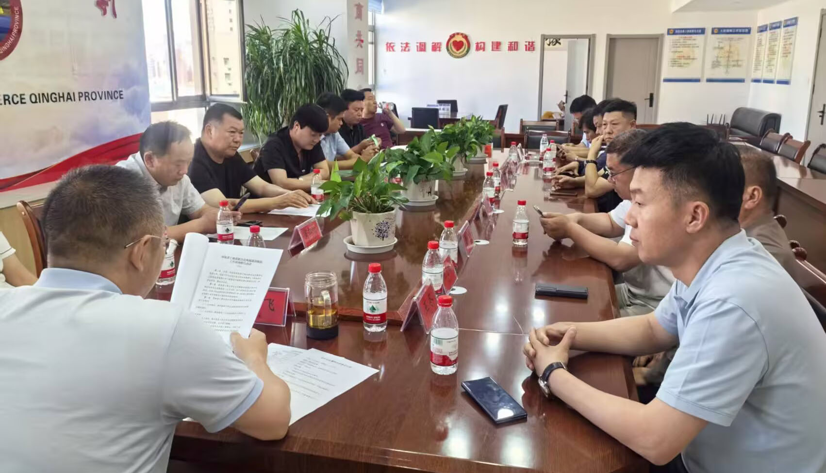 为更好发挥商会桥梁纽带作用,促进会员企业健康发展、高质量发展,搭建沟通交流平台,提升服务质量。2025年7月25日下午,青海省河南商会召开会长会议,学习传达了有关会议精神,总结上半年工作,安排部署了下半年工作。商会会长刘强主持会议,执行会长兼党支部书记吕敬琦,执行会长李会果,监事会主席安红会,常务副会长马刚良、叶中华,副会长张传雷、张红浩、朱洪军、朱永恒、谷超群、黑国跃、张见峰、侯晓锋、刘文恒、黄升、王冬,秘书长肖崇飞,共18人参加会议。 会议伊始,刘强会长带领与会人员集中学习传达了上级会议和文件精神。刘强会长指出,深入学习领会上级会议精神是做好商会工作的前提,要准确把握政策导向,将其融入商会建设和服务企业的全过程,确保商会发展始终与时代同频共振。与会人员结合行业发展实际交流学习心得,一致表示将切实把学习成果转化为推动工作的具体行动。